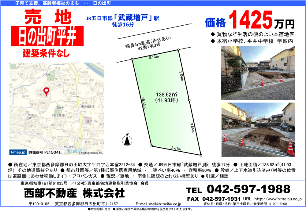 宅地・建物・農地・山林・アパート・貸家 日の出町で50年…